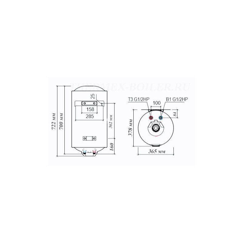 Boileris 50L, Galia 2.0kW, Vertikalus, Pakabinamas, Matmenys 365х378х722 mm, Atsparus korozijai, Mechaninis valdymas, Ilgai išsilaikantis šiltas vanduo, Su termometru, Sausas kaitinimo elementas
