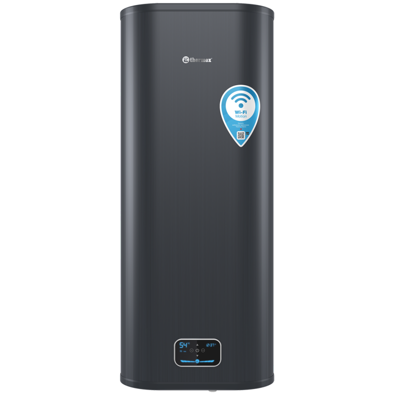 Elektrinis vandens šildytuvas Thermex ID SHADOW Wi-Fi, vertikalus arba horizontalus (pasirinktinai), pakabinamas. Thermex ID SHADOW Wi-Fi serijos vandens šildytuvai su antibakterine vidinio bako danga, pagaminta iš bio stiklo porceliano, kuri užtikrina geresnę apsaugą nuo korozijos ir karšto vandens švarumą. Šildytuvas lengvai valdomas ant jo įrengtu liečiamu ekranu ir naudojant įdiegtą "Wi-Fi Motion" technologiją, kurios dėka įrenginį nuotoliniu būdu gali valdyti keli vartotojai. Atsisiuntus "Thermex Home" programėlę (suderinama su „Android“ ar „IOS“ operacinėmis sistemomis) yra galimybė stebėti vandens šildytuvo veikimą, naudotis laikmačiu, įjungti/išjungti šildymą, valdyti temperatūrą ar pasirinkti reikiamą šildymo režimą. Taip pat galima programuoti elektrinio vandens šildytuvo Thermex ID SHADOW Wi-Fi darbą pagal savaitės dienas ir laiką arba pagal išorines salygas (kitos įrangos veikimą, oro sąlygas). Yra galimybė valdyti šildytuvą naudojant balso komandas per "Alice". Prieinamų funkcijų skaičius atnaujinamas ir nuolat plečiamas. Integruota funkcija, kuri tikrina šildytuvo darbą ir parodo klaidas ekrane ir "Thermex Home" programėlėje. Integruota "Smart" funkcija, kuri padeda taupyti energiją. Dėl daugybės Thermex ID SHADOW Wi-Fi tūrių ir vertikalios ir horizontalios padėties galimybės, vandens šildytuvas tinka sprendžiant karšto vandens tiekimo į beveik bet kokią patalpą problemas. Suteikiama 2 metų garantija bakui.