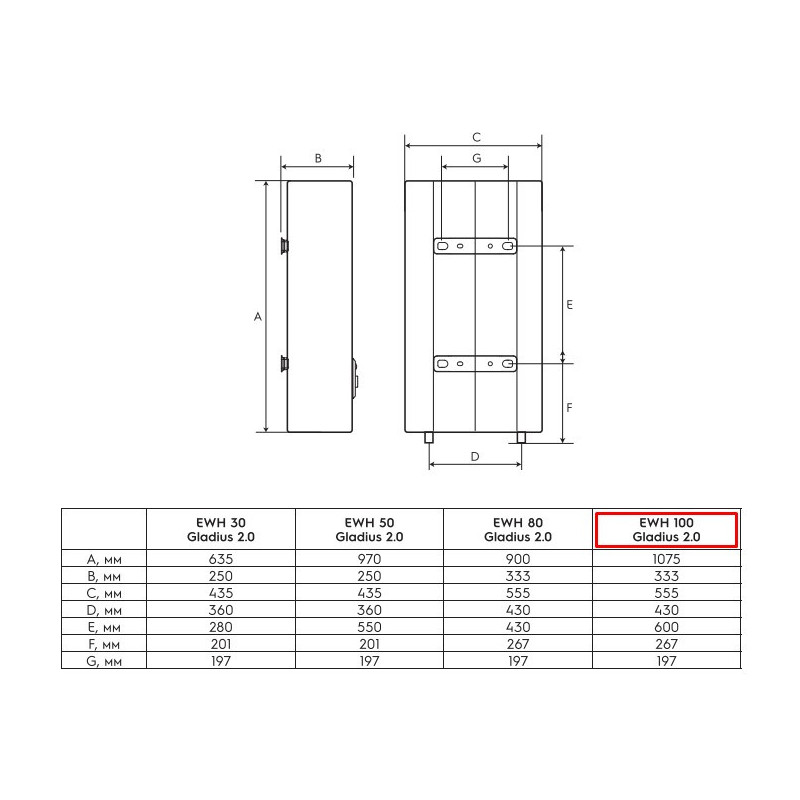 Vandens šildytuvas Electrolux EWH 100 Gladius 2.0 yra elektrinis modernaus dizaino boileris su emaliuotu vidaus baku. Boileryje sumontuoti du kaitinimo elementai, apsaugoti nuo tiesioginio kontakto su vandeniu. Be to yra galimybė rankiniu būdų pasirinkti kaitinimo elementų galingumą - 700/1300/2000 W. Veikimas mažesnio galingumo režimu itin svarbus esant elektros tinklo apribojimams. Vandens šildytuvas Electrolux EWH 100 Gladius 2.0 su įdiegta BSS (Bacteria Stop System) antibakterinio vandens valymo sistema. Electrolux vandens šildytuvus galima montuoti tiek vertikaliai, tiek horizontaliai. Suteikiama 2 metų garantija.