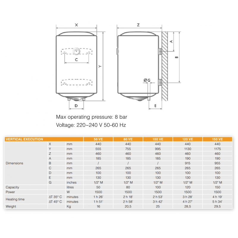 Elektriniai vandens šildytuvai Ferroli Calypso - tai patikimas ir praktiškas pasirinkimas, užtikrinantis lengvą bei patogų naudojimą. Gamintojas suteikia galimybę rinktis tiek vertikalius, tiek horizontalius modelius, kurie pritaikomi įvairių dydžių ir paskirties patalpoms. Ferroli Calypso serijos šildytuvai tiekiami su penkių varžtų flanšo konstrukcija, kuri palengvina įrenginio priežiūrą ir užtikrina patikimą veikimą. Šie modeliai gaminami su 50, 80, 100, 120 ir 150 litrų talpomis, todėl galite pasirinkti tinkamiausią variantą Jūsų poreikiams.