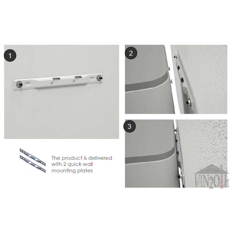 - Plokščia stačiakampė forma - storis nuo sienos tik 29 cm (31cm su valdymo rankenėlę)