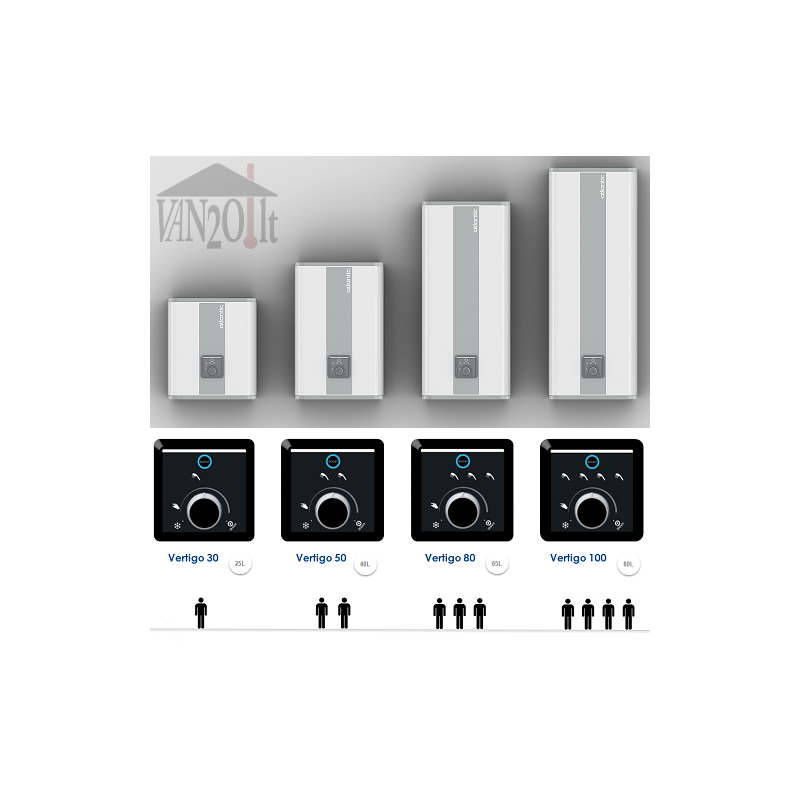 Vienas iš šildymo elementu dirba įprastiniu režimu, kitas įsijungia greitam vandens pašildymui. Tokiu būdu yra taupoma elektros energija ir vanduo dušui pašildomas vos per 30 min. Be to visi Atlantic VERTIGO yra lengvai montuojami ir turi paprastą intuityvų valdymą.