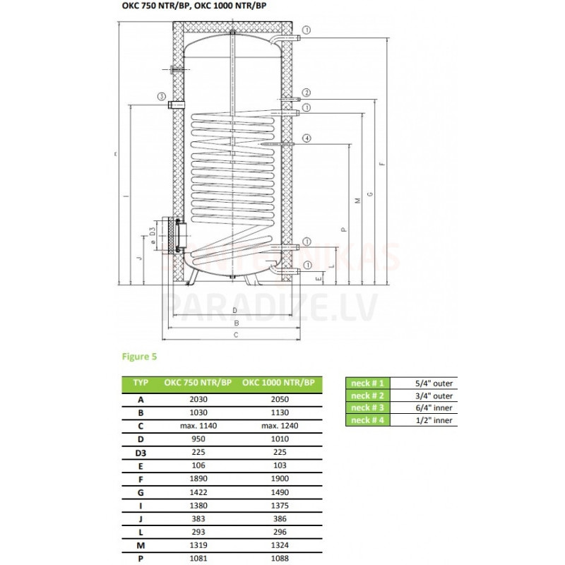 Netiesioginio šildymo vandens šildytuvas Dražice OKC 750 NTRR/BP, 750 l talpos. Yra galimybė sumontuoti elektrinį teną (perkamas atskirai) ir padaryti įrenginį kombinuoto šildymo vandens šildytuvu. Netiesioginio šildymo vandens šildytuvas montuojamas prie kieto kuro arba dujinių katilų arba saulės kolektorių. Dražice OKC 750 NTRR/BP yra su apsauga nuo vandens perkaitimo ir užšalimo. Suteikiama 5 metų garantija.