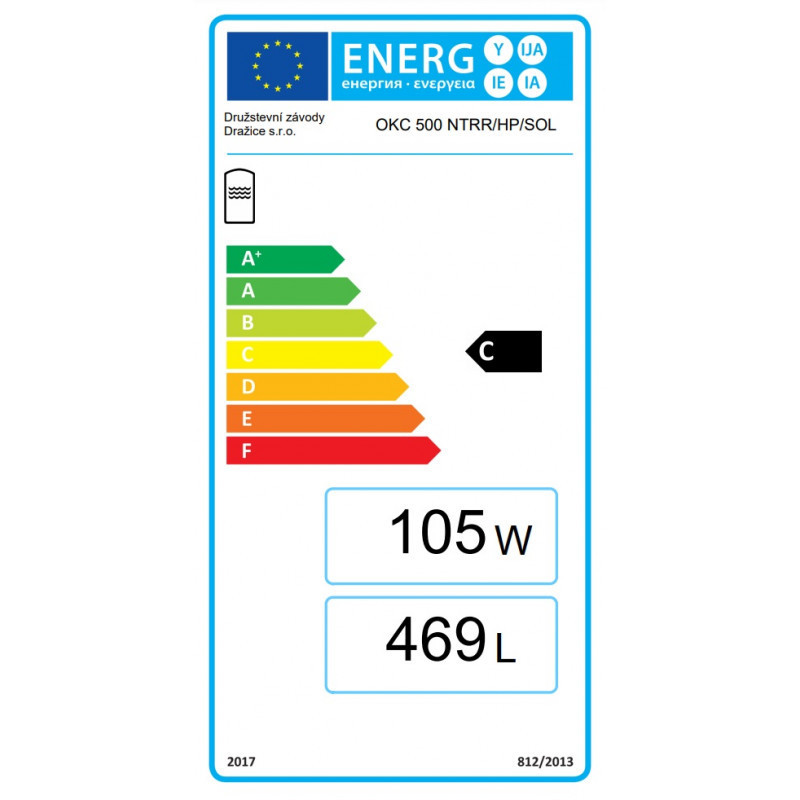 Netiesioginio šildymo vandens šildytuvas Dražice OKC 500 NTRR/HP SOL, 469 l talpos, pastatomas. Viršutinis (didesnis) šilumokaitis skirtas mažos temperatūros šilumos šaltiniui (šilumos siurbliui), o apatinis - saulės kolektoriams. Yra galimybė sumontuoti elektrinį teną (perkamas atskirai) ir padaryti įrenginį kombinuoto šildymo vandens šildytuvu. Netiesioginio šildymo vandens šildytuvas Dražice OKC 500 NTRR/HP SOL montuojamas prie šilumos siurblio ir saulės kolektorių. Suteikiama 5 metų garantija.