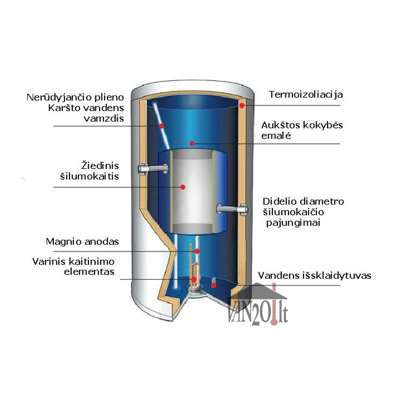 Boileris 100L, Šilumokaitis 18kW, Vertikalus/Horizontalus, Pajungimas universalus, Matmenys 567x747mm