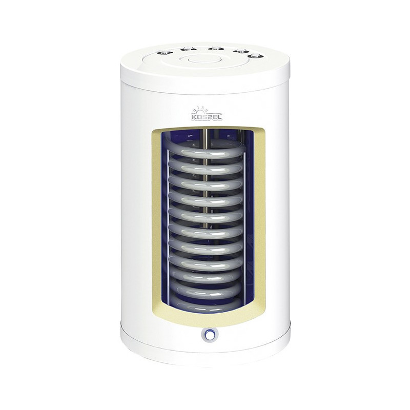 Kospel SWK Termo Top vandens šildytuvai su spiralinio tipo šilumokaičiu puikiai tinka vandens šildymui, dirbant kartu su dujiniu, granuliniu arba kieto kuro katilu. 97-134 litrų boileriuose montuojamas 0.82-1.1m2 pločio šilumokaitis, užtikrinantis apie 25-32kW galingumą ir greitą vandens sušildymą.