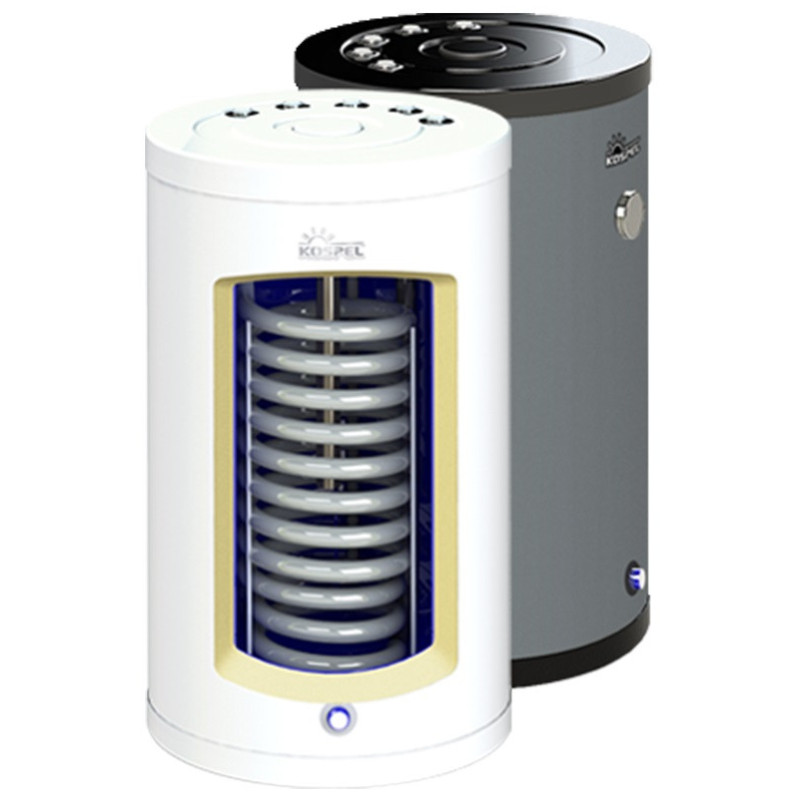 Kospel SWK Termo Top vandens šildytuvai su spiralinio tipo šilumokaičiu puikiai tinka vandens šildymui, dirbant kartu su dujiniu, granuliniu arba kieto kuro katilu. 97-134 litrų boileriuose montuojamas 0.82-1.1m2 pločio šilumokaitis, užtikrinantis apie 25-32kW galingumą ir greitą vandens sušildymą.