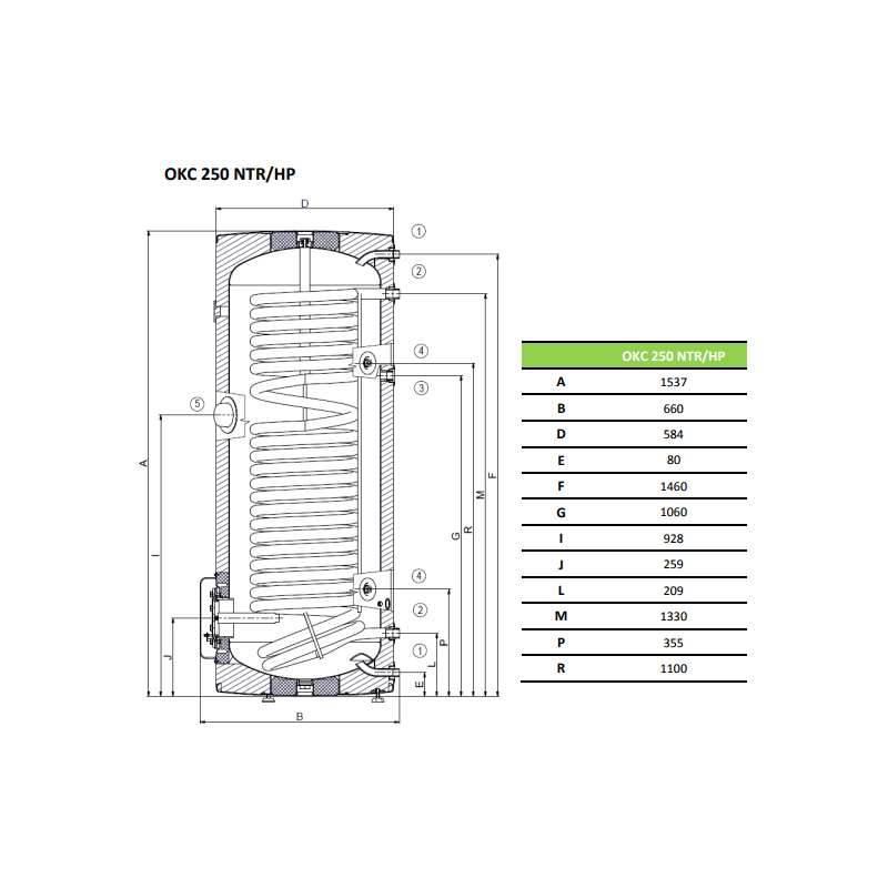 Netiesioginio šildymo vandens šildytuvas Dražice OKC 250 NTR/HP, 234l talpos, pastatomas. Šilumokaitis - 57kW, perdavimo plotas - 2.5m2. Yra galimybė sumontuoti elektrinį teną (perkamas atskirai) ir padaryti įrenginį kombinuoto šildymo vandens šildytuvu. Netiesioginio šildymo vandens šildytuvas Dražice OKC 250 NTR/HP montuojamas prie šilumos siurblio. Suteikiama 5 metų garantija.
