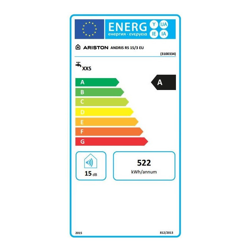 2015 m. Ariston sukurtas mažos talpos vandens šildytuvas Ariston ANDRIS RS pilnai atitinka naujausias ES nuostatas dėl energijos efektyvumo ženklinimo ErP vandens šildymo produktams.