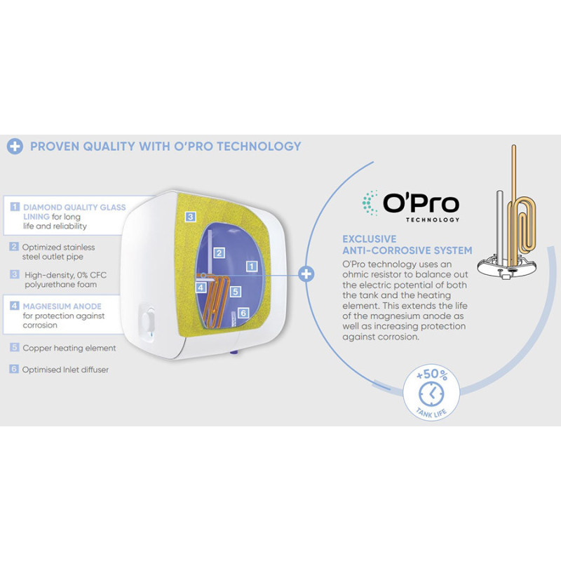 Vandens šildytuvai Atlantic NANTO puikiai tinka Jūsų namams dėl aukščiausios kokybės, kompaktiško dizaino ir montavimo galimybės tiek virš, tiek po kriaukle. Galingas 2kW kaitinio mazgas užtikrina greitą ir galingą šildymą. Dėl išskirtinės „O'Pro“ apsaugos technologijos galite tikėtis 50% ilgesnio bako tarnavimo laiko!