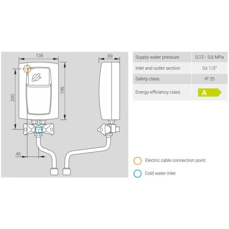 Momentinis vandens šildytuvas Kospel EPS2 Twister 4.4kW yra kompaktiškas, atrandantis savo vietą kiekvienuose namuose, jį galima statyti tiek vonioje, tiek ir duše, tiek kitoje pasirinktoje vietoje. Momentinis vandens šildytuvas Kospel EPS2-4.4 Twister parduodamas internetu patrauklia kaina. Šis įrenginys montuojamas virš plautuvės, o į komplektą taip pat įeina ir maišytuvas. Daugiafunkcinis vandens maišytuvo daliklis užtikrina naudojimo komfortą ir suteikia galimybę sutaupyti apie 50% energijos ir vandens suvartojimo. Užsisakykite šią prekę mūsų elektroninėje parduotuvėje ir pristatysime ją per vieną dieną.