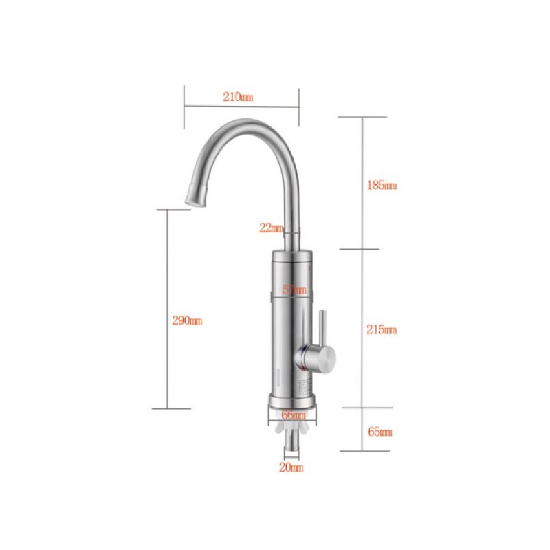Galia 3.0kW, Įtampa 220V, Srovė 11.4A, Našumas 1.5l/min, Maišytuvas su aukštu metaliniu čiaupu komplekte, Nerūdijančio plieno kaitinimo elementas, Nerūdijančio plieno korpusas