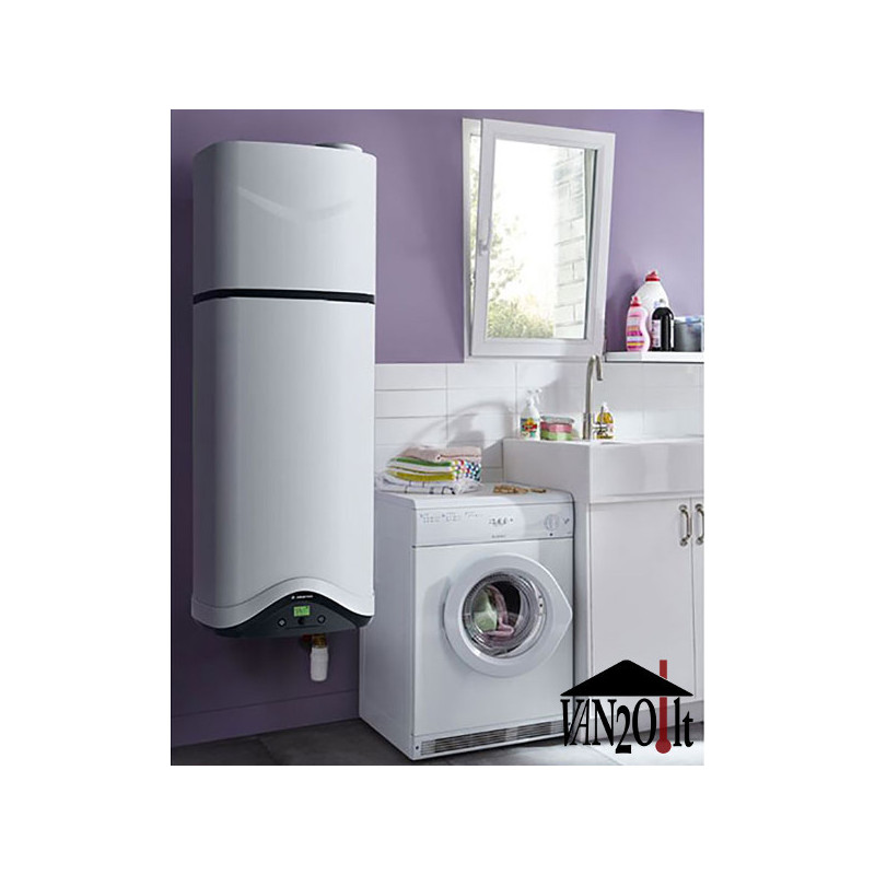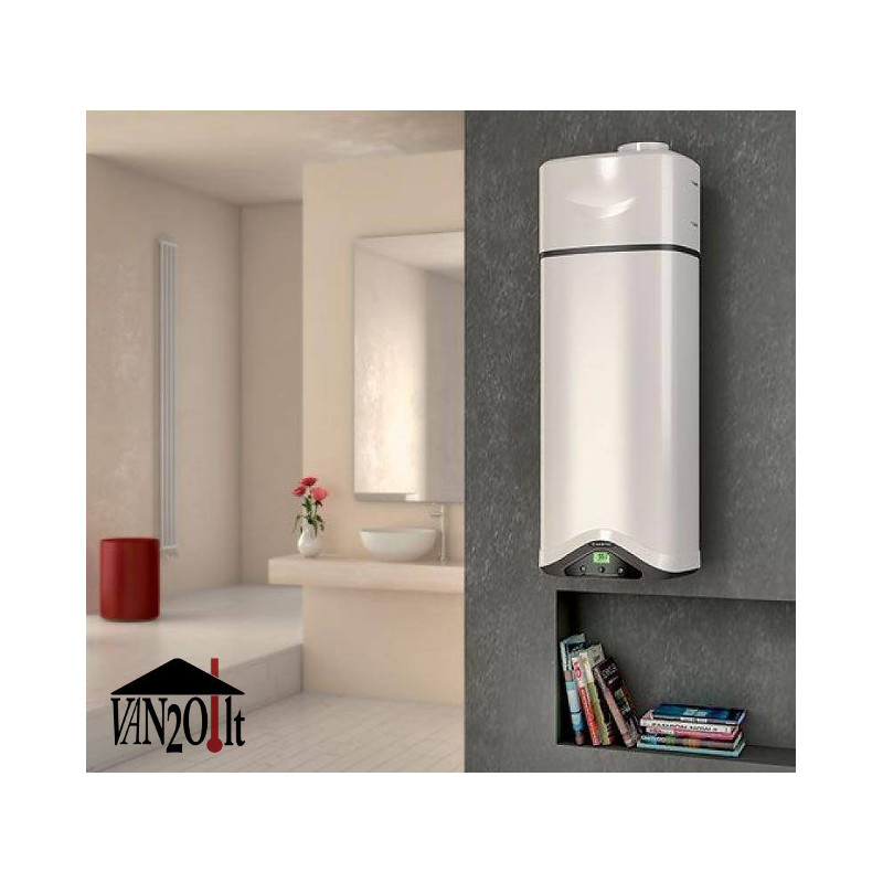 Boileris 110L, Vidutinis šiluminis naudingumas 850W, Vidutinės el. energijos sąnaudos 250W, El. teno galingumas 1200W, Aukščiausia vandens temperatūra šilumos siurblio režimu 62°C, Žemiausia/aukščiausia oro temperatūra -5/42°C, Pakabinamas monoblokas