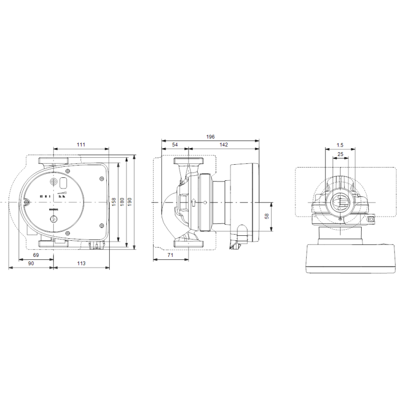 Cirkuliacinis siurblys Grundfos Magna1 25-80 180. Cirkuliaciniai siurbliai Grundfos Magna1 skirti naudoti šiose srityse: oro kondicionavimas/šildymas, karšto vandens recirkuliacija. Siurblys yra su itin paprasta vartotojo sąsaja, tai leidžia jį valdyti labai paprastai. Dėl hermetiškos cirkuliacinio siurblio Grundfos Magna1 25-80 180 rotoriaus konstrukcijos, nereikalinga techninė priežiūra. Suteikiama 2 metų garantija.