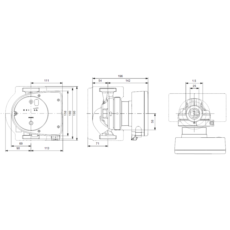 Cirkuliacinis siurblys Grundfos Magna1 25-120 180. Cirkuliaciniai siurbliai Grundfos Magna1 skirti naudoti šiose srityse: oro kondicionavimas/šildymas, karšto vandens recirkuliacija. Siurblys yra su itin paprasta vartotojo sąsaja, tai leidžia jį valdyti labai paprastai. Dėl hermetiškos cirkuliacinio siurblio Grundfos Magna1 25-120 180 rotoriaus konstrukcijos, nereikalinga techninė priežiūra. Suteikiama 2 metų garantija.
