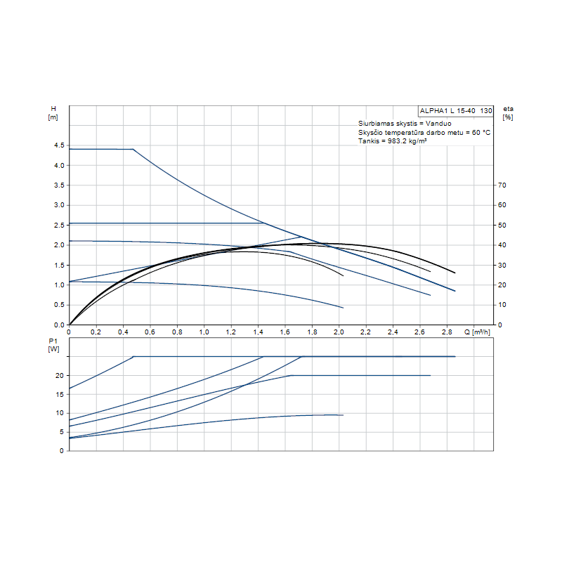 Cirkuliacinis siurblys Grundfos ALPHA1 L 15-40 130. Cirkuliaciniai siurbliai Grundfos ALPHA1 L tai didelio efektyvumo hermetiško rotoriaus cirkuliaciniai siurbliai. ALPHA1 L siurbliai užtikrina aukščiausią energijos suvartojimo efektyvumą, pagrįstą Grundfos patirtimi ir technologijomis. Cirkuliaciniai siurbliai Grundfos ALPHA1 L puikiai tinka šildymo ir karšto vandens sistemoms. Elektroninis siurblio mazgas sumontuotas siurblio korpuse. Dėl tokios konstrukcijos ALPHA1 L siurbliai yra žymiai kompaktiškesni. Tokie matmenys leidžia sumontuoti siurblį ertmėse, kur yra itin mažai laisvos vietos ir standartinio siurblio montavimas būtų neįmanomas. Siurblio valdymas yra maksimaliai supaprastintas. Visi siurblio nustatymai nesudėtingai keičiami vienu mygtuku. Įrengus Grundfos ALPHA1 L siurblį daugiau nebereikės rūpintis sudėtingais cirkuliacinio siurblio nustatymais. Suteikiama 2 metų garantija.