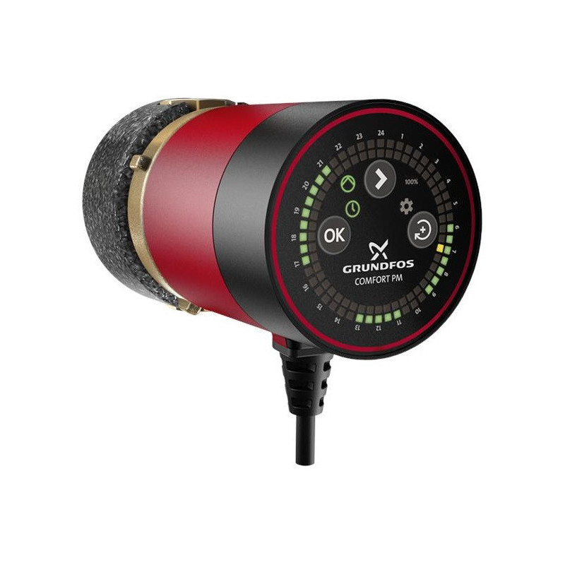 Cirkuliacinis siurblys Grundfos Comfort 15-14 BDT PM. Grundos Comfort BDT PM cirkuliaciniai siurbliai skirti buitinio karšto vandens cirkuliacijai, užtikrinant, kad prie visų namuose esančių maišytuvų būtų karštas vanduo. Siurblys Grundfos Comfort 15-14 BDT PM yra su korozijai atspariu korpusu, kuris tinka geriamajam vandeniui. Įrenginys su integruota variklio apsaugos elektronika ir sausosios eigos aptikimu todėl tarnaus ilgą laiką. Maks. siurbiamo skysčio temperatūra - 95 °C, slėgis - iki 1.4 m. Suteikiama 2 metų garantija.