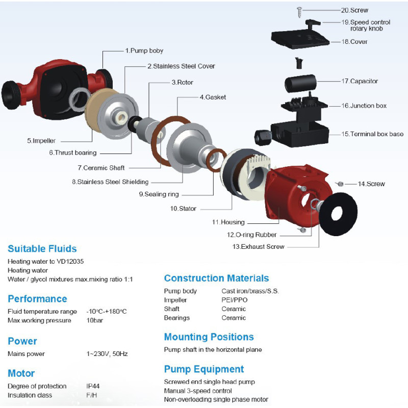 Slėgis 3/5/6 m, Galia 48 - 92 W, Ketinis atsparus korozijai korpusas, Montažinis ilgis - 180 mm, Maksimalus darbinis slėgis - 10 bar, Siurblio pajungimas - 1 1/2", Skirtas šildymo sistemoms ir buitiniam karštam vandeniui, Maks. vandens temperatūra 110°C