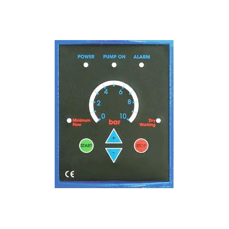 Įėjimo įtampa 230Vac 50...60Hz, Išėjimo įtampa 230Vac 0...55Hz, Siurblio galingumas iki 0.75kW, Išėjimo srovė iki 9A, Slėgio reguliavimas 0...10 bar, Slėgio daviklis Keller komplekte