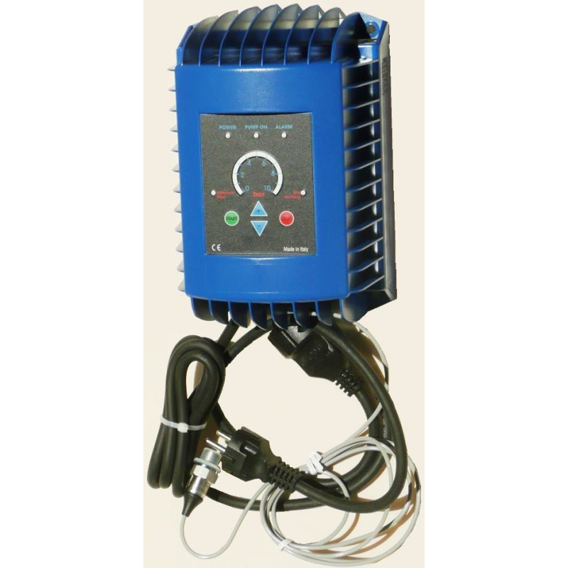 Įėjimo įtampa 230Vac 50...60Hz, Išėjimo įtampa 230Vac 0...55Hz, Siurblio galingumas iki 1.5kW, Išėjimo srovė iki 13A, Slėgio reguliavimas 0...10 bar, Slėgio daviklis Keller komplekte