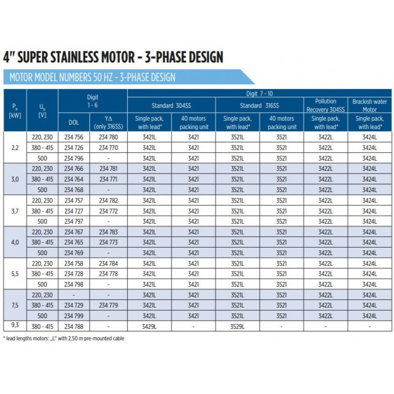 Giluminio vandens siurblio variklis Franklin 7.5kW 400V
