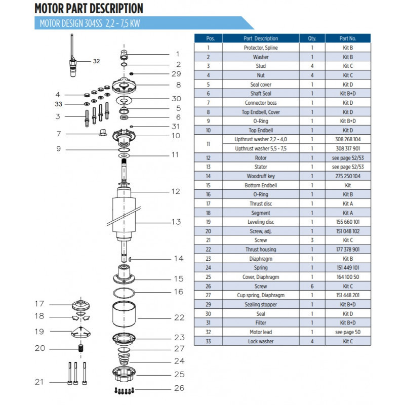 Galia 7.5 kW, Srovė 17.1 A, Sukimo momentas 6500 N, Maks. skysčio temperatūra iki 30 °C, Aplinkos temperatūra nuo -15 °C iki 50 °C, Užpildytas švariu vandeniu, Modelis 3P-7,5-380/415-50-W