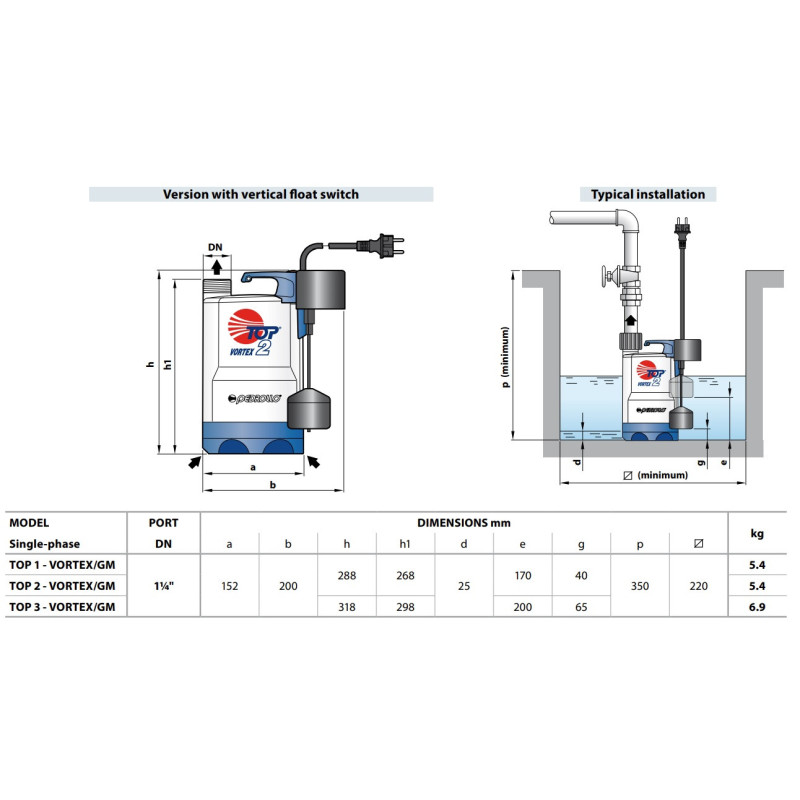 Pedrollo TOP VORTEX drenažiniai vandens siurbliai naudojami nešvaraus vandens išsiurbimui iš santykinai nedidelių talpų, pvz. baseinai, buitinės kanalizacijos šuliniai ir pan. Pedrollo TOP VORTEX drenažinis vandens siurblys gali perpumpuoti vandenį su kietosiom dalelėm iki 25 mm skersmens. Šitie Pedrollo drenažiniai siurbliai turi efektyvų variklio aušinimą ir dvigubą mechaninį veleno sandarinimą, kas užtikrina vandens siurblių eksploatacijos paprastumą ir saugų funkcionavimą.