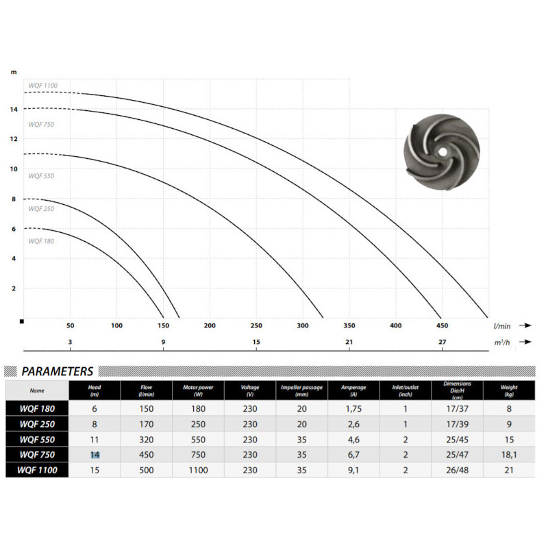 Slėgis 0.1-15m, Galia 1.1kW, Našumas 0.1-500L/min., Ketaus darbo ratas, 220V
