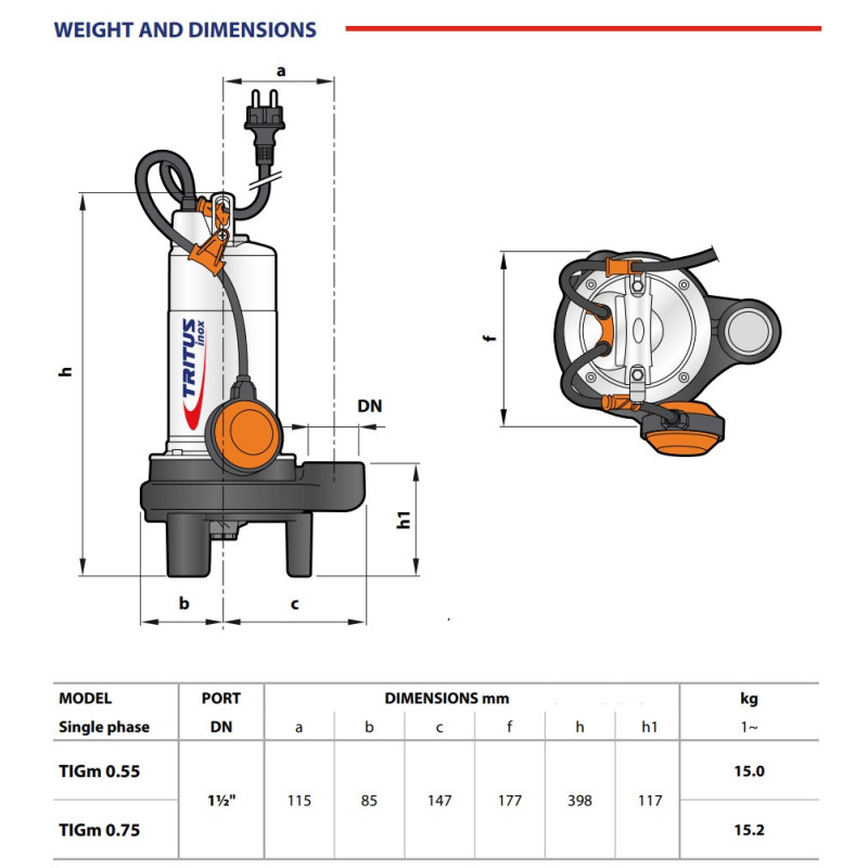 Fekalinis siurblys su smulkintuvu Pedrollo TRITUS Inox TIGm 0.55