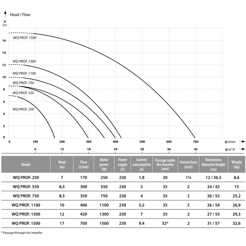 Fekaliniai siurbliai Ibo WQ Professional yra komplektuojami su plūdiniu mechanizmu, kuris apsaugo siurblį nuo sausosios eigos ir galimų pažeidimų. Srieginė išleidimo jungtis ir komplekte esantis pajungimo adapteris užtikrina paprastą išleidimo žarnos prijungimą. Visi Ibo WQ Professional vienfaziai siurbliai tiekiami su šilumos apsauga, įmontuota variklio apvijoje.