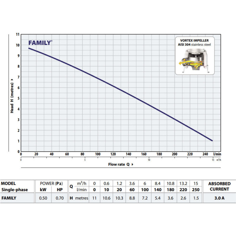 Pedrollo FAMILY siurblys yra idealus pasirinkimas tiek individualiems vartotojams, tiek komercinėms reikmėms. Jis užtikrina: