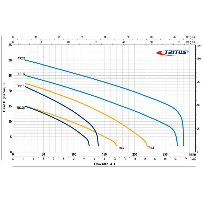 Fekaliniai siurbliai (nuotekų siurbliai) TRITUS panardinami iki 10 m gylyje. Skysčių temperatūra negali viršyti +40°C. Nuolatiniam veikimui reikalingas minimalus panardinimo lygis 300 mm. (Tritus 1.5-2.2 - 350mm) Kietųjų dalelių praeinamumas yra 50 mm.