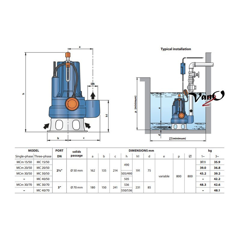 Fekalinis siurblys Pedrollo MC 30/65, pagamintas iš storo ketaus, išskirtinai tvirtas, atsparus dilimui ir ilgaamžis. Pedrollo MC 30/65 fekaliniai vandens siurbliai (nuotekų siurbliai) yra skirti stipriai purvino vandens pumpavimui buitiniais poreikiais (pvz.: buitiniu šulinių išsiurbimas ir pan.). Pumpuojamas skystis gali turėti iki 65 mm skersmens kietųjų priemaišų. MC fekalinių siurblių maksimalus panardinimo gylis siekia 10 m, o pumpuojamo skysčio temperatūra negali viršyti 40 °C. Šiuose siurbliuose naudojama VORTEX tipo atvira sparnuotė tinkama nuotekų su didele molio koncentracija išsiurbimui. Fekaliniam siurbliui Pedrollo MC 30/65 suteikiama 2 metų garantija.