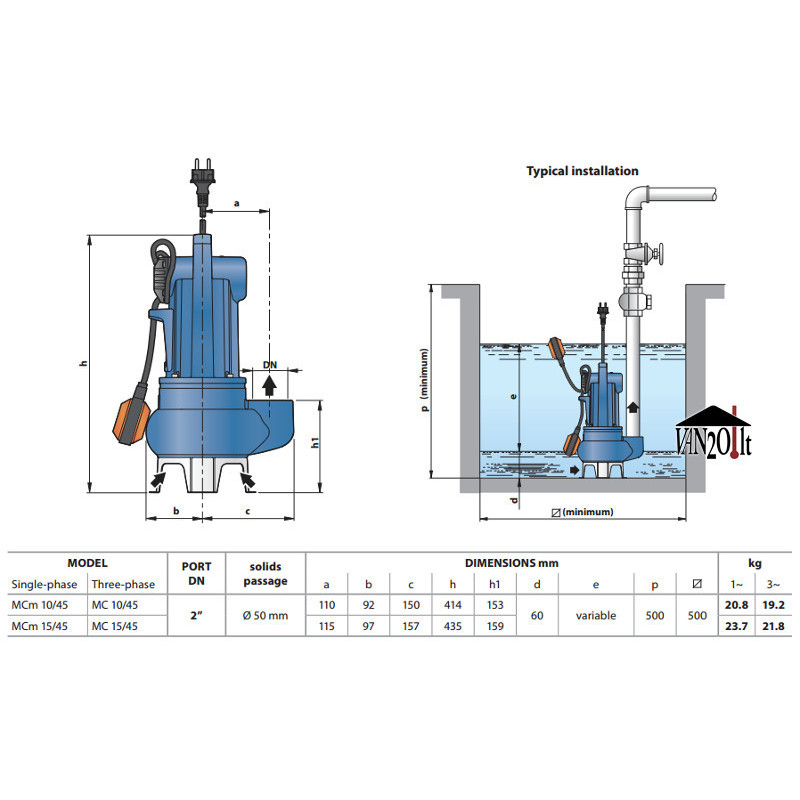 Fekalinis siurblys Pedrollo MC - gamintojo specifikacija PDF (anglų k.)