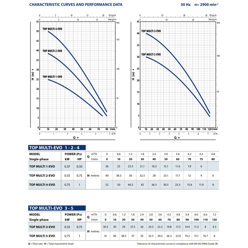 Pedrollo TOP MULTI 4 EVO vandens siurbliai skirti vandens arba chemiškai neaktyvių skysčių pumpavimui. Dėl labai aukšto naudingumo koeficiento ir didelio patikimumo, šie panardinami vandens siurbliai naudojami vandens tiekimui iš vandens bakų, rezervuarų, santykinai gilių šulinių arba drėkinimo sistemose. Komplektuojami su 10m kabeliu. Pedrollo TOP MULTI 4 EVO siurbliai skirti naudoti įsiurbimui iš pajungto vamzdžio su plūde (perkama atskirai).