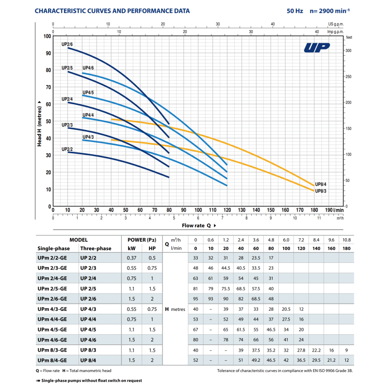 Pedrollo UP 4/6-GE pagrindiniai privalumai