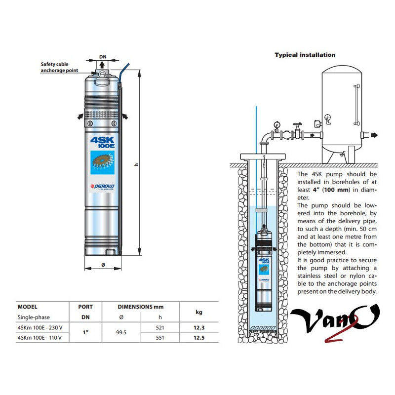 Vandens siurblys Pedrollo 4SKm100E DAVIS - gamintojo puslapis (anglų k.)