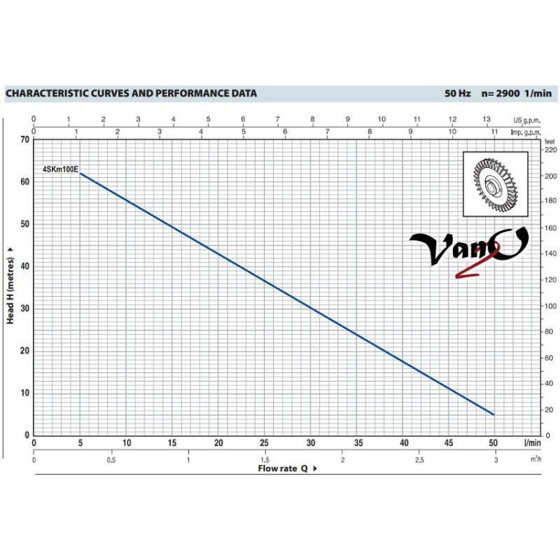 Vandens siurblys Pedrollo 4SKm100E DAVIS - gamintojo specifikacija (anglų k.)