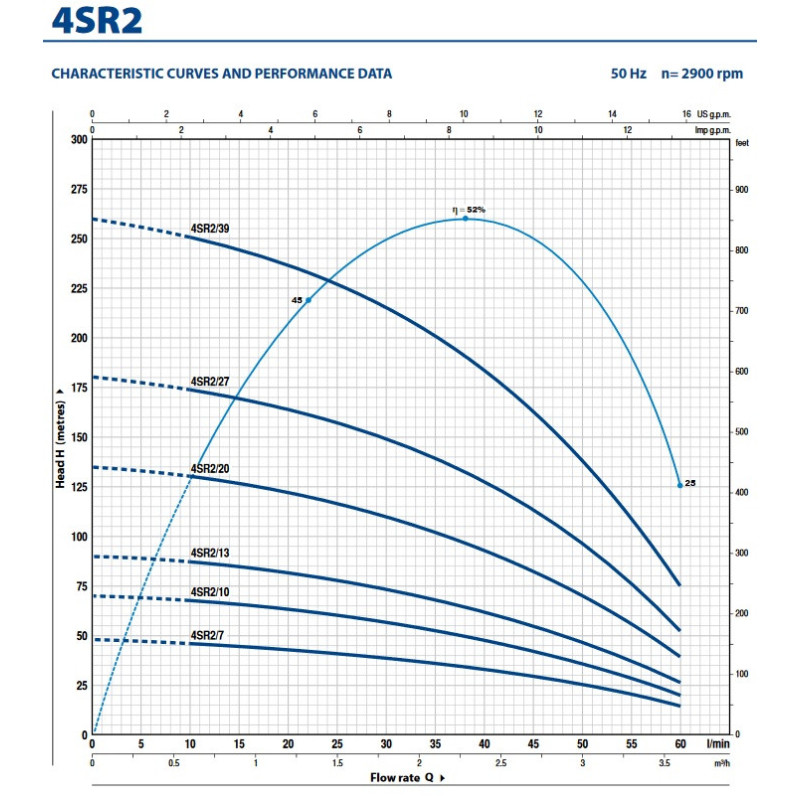 Pedrollo 4SR-R komplektuojami su dvipoliais Franklin varikliais. Giluminiam siurbliui Pedrollo 4SR2M/20-R suteikiama 2 metų garantija (hidraulikai - 3 metų).