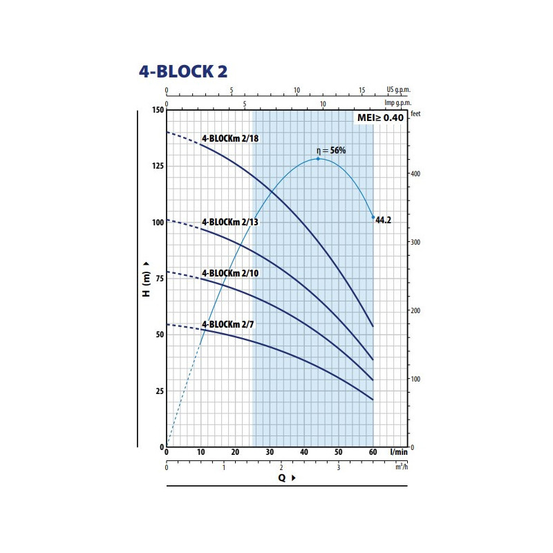 Pedrollo 4BLOCK giluminiai vandens siurbliai yra montuojami iki 60 m po vandeniu gylyje. Vandens temperatūra neturi viršyti +35 °C, o smėlio koncentracija ne didesnė 200 g/m³. Šitie giluminiai vandens siurbliai puikiai veikia horizontalioje ir vertikalioje padėtyje.