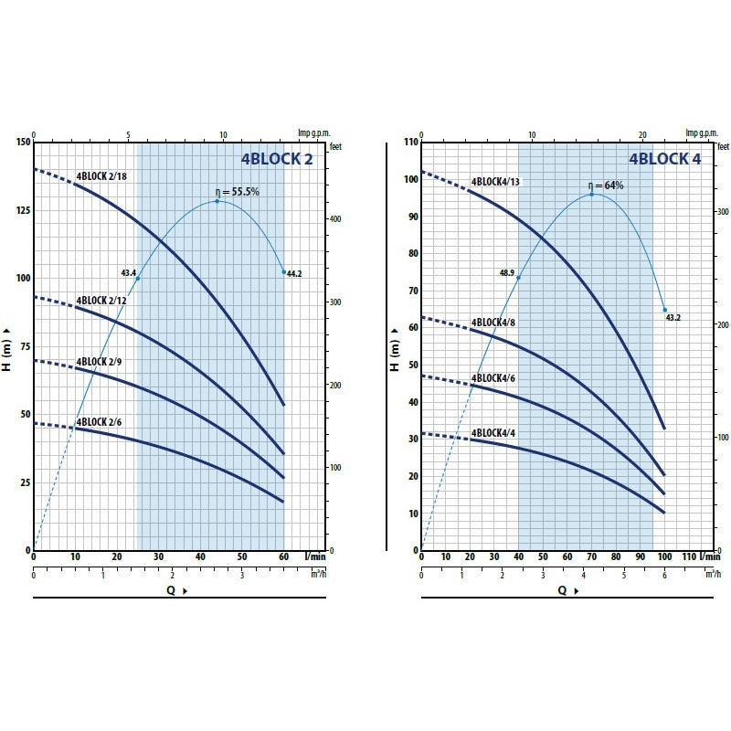 Pedrollo 4BLOCK giluminiai vandens siurbliai yra montuojami iki 60 m po vandeniu gylyje. Vandens temperatūra neturi viršyti +35 °C, o smėlio koncentracija ne didesnė 200 g/m³. Šitie giluminiai vandens siurbliai puikiai veikia horizontalioje ir vertikalioje padėtyje.