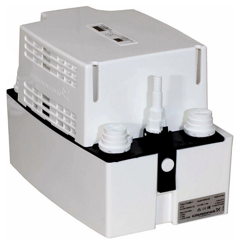 Siurblys drenažui Grundfos Conlift 1, 75 W. Įrenginys padeda pašalinti kondensatą, kuris yra surenkamas žemiau kanalizacijos lygio arba vietose, kur nėra galimas laisvas kondensato nutekėjimas į pastato kanalizacijos arba drenažo sistemą. Grundfos Conlift 1 dažniausiai naudojamas su kondensaciniais katilais, kondensatui iš aušinimo, oro kondicionavimo ir šaldymo sistemų, taip pat oro garintuvų ir sausintuvų. Produktas tinkamas kondensatui, kurio pH vertė yra didesnė kaip 2.5. Esant mažesniam pH - naudojamas Grundfos Conlift 2 pH+ drenažinis siurblys. Siurblys veikia pilnai automatiškai ir tyliai, turi per aukšto vandens lygio plūdinį jungiklį. Grundfos Conlift 1 gali būti montuojamas ant grindų arba ant sienos. Suteikiama 2 metų garantija.