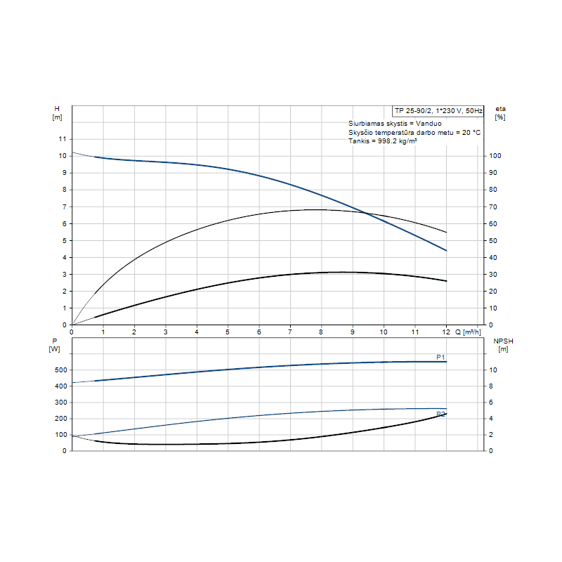 Linijinis vienpakopis siurblys Grundfos TP 25-90/2 A-O-A-BQQE-DX. Vienpakopis, vienablokis, spiralinės kameros siurblys su vienodų skersmenų įvadu ir išvadu vienoje tiesėje. Siurblys yra nuimamos iš viršaus konstrukcijos - variklį, siurblio galvutę ir darbaratį galima nuimti techninei priežiūrai arba remontui, siurblio korpusą paliekant prijungtą prie vamzdžių. Siurblys turi nesubalansuotą guminį dumplinį sandariklį. Veleno sandariklis tenkina EN 12756 reikalavimus. Grundfos TP 25-90/2 A-O-A-BQQE-DX siurblio variklis yra asinchroninis ir aušinamas ventiliatoriumi. Suteikiama 2 metų garantija.