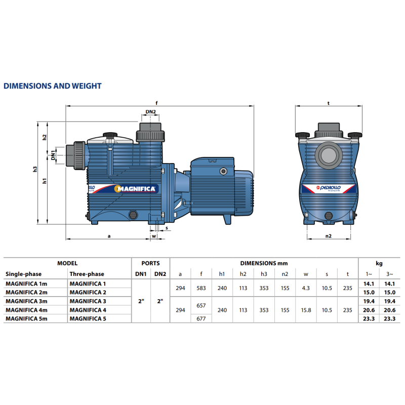 Pedrollo Magnifica serijos siurbliai pagaminti iš stiklo pluoštu sustiprinto polipropileno, išskirtinai tvirti, atsparūs dilimui ir ilgaamžiai. Šie savisiurbiai išcentriniai elektriniai siurbliai tinkami baseinų vandens filtravimui ir cirkuliacijai. Pedrollo Magnifica siurblių siurbiamo skysčio temperatūra gali siekti 45 °C, o aplinkos temperatūra negali viršyti 50 °C. Šie siurbliai gali būti panardinami iki 10 m gylyje. Pedrollo Magnifica siurblius rekomenduojama naudoti iki 180 m3 talpos baseinuose (pH 6.5 - 8.4). Be to, siurbliai turi būti eksploatuojami vėdinamose ir nuo blogų oro sąlygų apsaugotose patalpose. Pedrollo Magnifica siurbliams suteikiama 2 metų garantija.