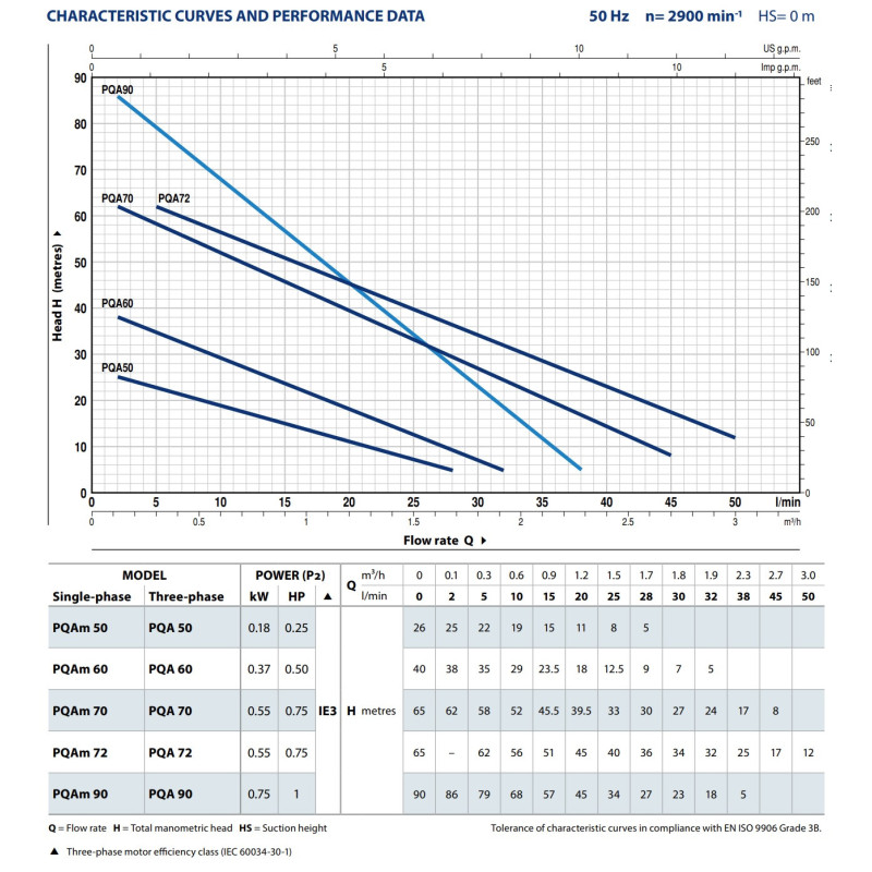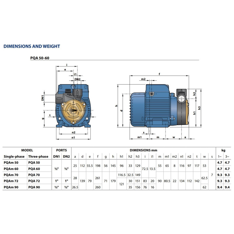 Sausai statomas horizontalus siurblys PQAm 90 yra tinkamas naudoti su švariu vandeniu ir skysčiais, kurie nėra chemiškai agresyvūs medžiagomis, iš kurių yra pagamintas siurblys. Taip pat, hidraulinės šio siurblio savybės bei kompaktiškumas suteikia galimybę šį įrenginį naudoti tiek vidiniam, tiek pramoniniam vartojimui. Skirtas švariam, be kietų dalelių, vandeniui pumpuoti.
