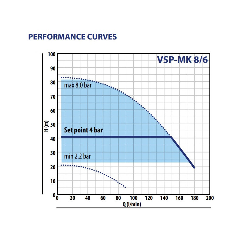 Pedrollo VSP-MK 8/6 yra kompaktiška autonominė sistema užtikrinanti didelį našumą. Dėl tolygaus paleidimo ir stabdymo yra išvengiama vandens smūgiavimo, todėl vandens siurblys veikia itin tyliai ir pastebimai sumažina energijos sąnaudas. Pedrollo VSP-MK 8/6 riboja elektros srovę, įspėja įtampai viršijus leistiną ribą ir apsaugo nuo perkaitimo ar trumpojo jungimo. Be to integruota apsauga nuo sausos eigos ir automatinis siurblio išjungimas įvykus gedimui užtikrina visišką saugumą naudojantis įrenginiu. Pedrollo VSP-MK 8/6 vandens siurbliui suteikiama 2 metų garantija.