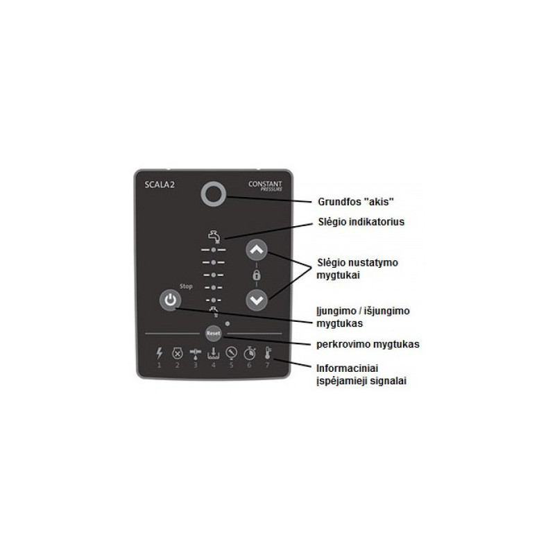 SCALA2 yra visiškai naujas sprendimas privataus sektoriaus vandens tiekimui. SCALA2 kompaktiška, paruošta naudojimui sistema užtikrinanti pastovų slėgį name paleidus net kelis vandens čiaupus vienu metu. Šiame kompaktiškame įrenginyje sumontuotas siurblys, dažnio keitiklis, slėgio jutiklis, išsiplėtimo indas ir atbulinis vožtuvas. Šių SCALA2 komponentų pagalba, siurblys automatiškai , atsižvelgiant į slėgio svyravimus įvade ir išvade reguliuoja savo apsukas ir užtikrina pastovų vandens slėgį name. SCALA2 variklį aušinantis pumpuojamas skystis, tuo pačiu garantuoja labai žemą triukšmo lygį. SCALA2 vienas iš tyliausių rinkoje esančių slėgio kėlimo siurblių.
