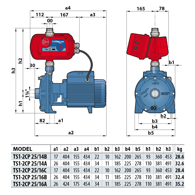 Pedrollo Tissel-100 TS1-2CP 25/16A yra automatinė pastovaus slėgio vandens tiekimo sistema su inverteriu, į kurią integruotas didelio efektyvumo išcentrinis siurblys, hidroforo talpa, slėgio jutiklis ir atbulinis vožtuvas. Pedrollo TS1-2CP 25/16A siurblyje yra įmontuotas slėgio jutiklis, kuris visą laiką matuoja slėgio pokyčius. Slėgiui nukritus žemiau nustatytos ribos, siurblys automatiškai didina apsukas ir siekia atstatyti įvykusį pokytį. Pedrollo TS1-2CP 25/16A yra kompaktiška autonominė tyli sistema užtikrinanti didelio našumą. Integruotas intuityviai valdomas dažnio keitiklis užtikriną tokius pranašumus: