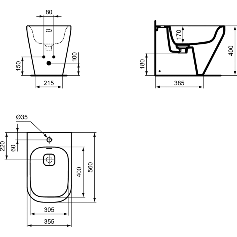 Bidė Ideal Standard Tonic II, pastatoma