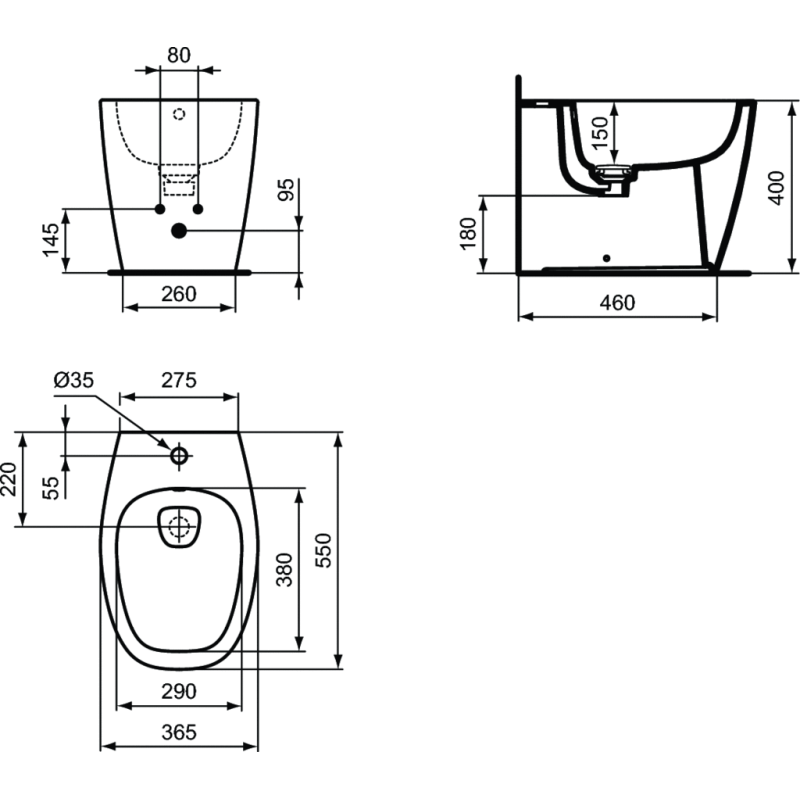 Bidė Ideal Standard Dea, pastatoma
